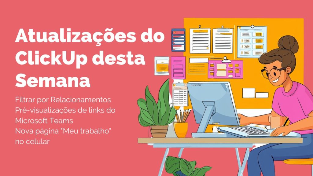 Nas atualizações do ClickUp desta semana, trazemos a capacidade de filtrar por relacionamentos, pré-visualizações de links do Microsoft Teams e muito mais. Vamos direto ao ponto!