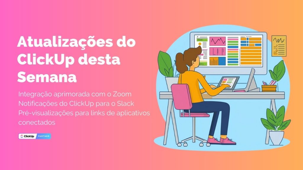Nas atualizações do ClickUp desta semana, trazemos a integração aprimorada com o zoom, notificações do ClickUp para o Slack, pré-visualizações elegantes para links de aplicativos conectados e muito mais. Vamos direto ao ponto!