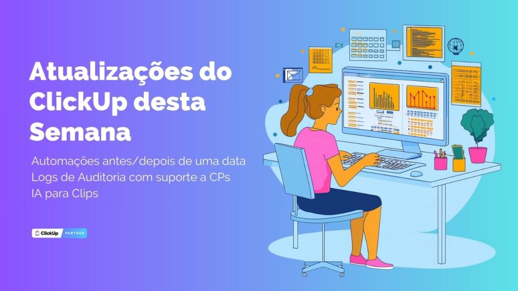 Nas atualizações do ClickUp desta semana, trazemos as automações com datas dinâmicas, suporte para Campos Personalizados nos Logs de Auditoria, IA para Clips e muito mais. Vamos direto ao ponto!
