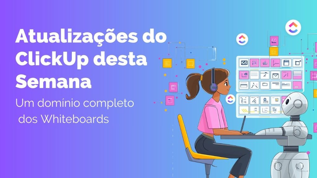 Nas atualizações do ClickUp desta semana, trazemos o domínio completo dos Whiteboards e muito mais. Vamos direto ao ponto!